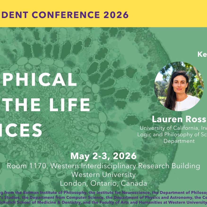 The Rotman Institute of Philosophy is excited to announce the second annual Rotman Graduate Student Conference, taking place on Saturday, May 2 and Sunday, May 3, 2026, at the University of Western Ontario, Canada. We are pleased to announce Philosopher, Dr. Lauren Ross (University of California, Irvine) and Professor of Bioengineering, Dr. Dani S. Bassett (University of Pennsylvania) as our keynote speakers.