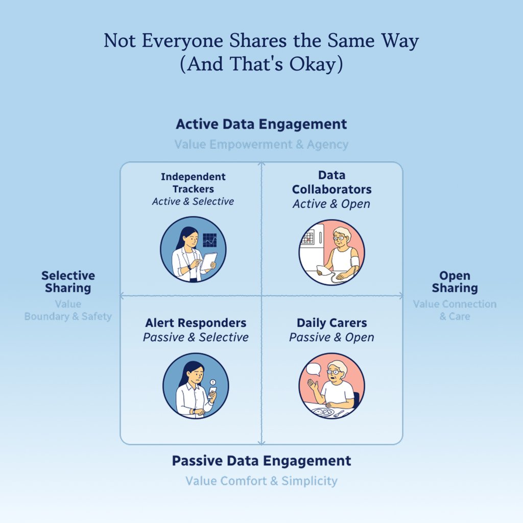 In Thai culture, informal caregiving is embedded in everyday practices, yet there's a gap between collective care values and individual-centred health tools that we use. Health data sharing can be both relational and reciprocal, where families exchange health information, support each other's decisions, and build understanding together through health data sharing.