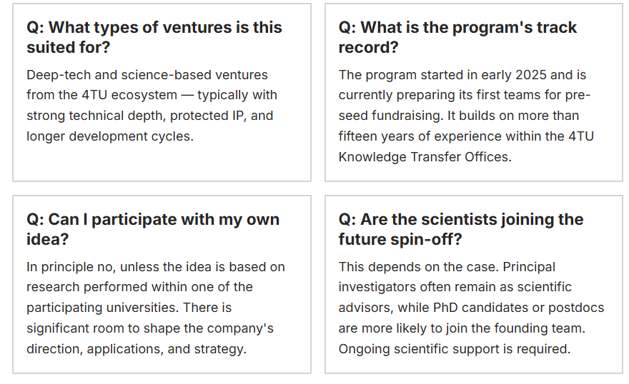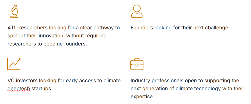 The program is led by TU Delft Impact Studio, the pre-incubator of TU Delft, in collaboration with the Knowledge Transfer Offices of all four universities.