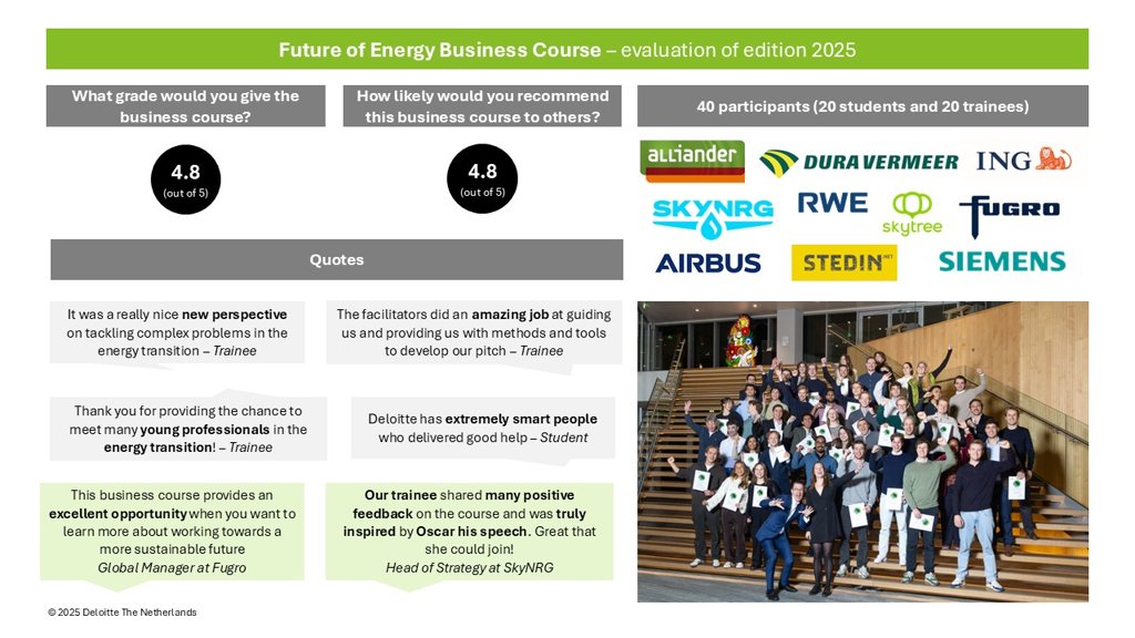 This course is a collaboration between Deloitte and 4TU.Energy, the yearly track has been taking place since 2022.