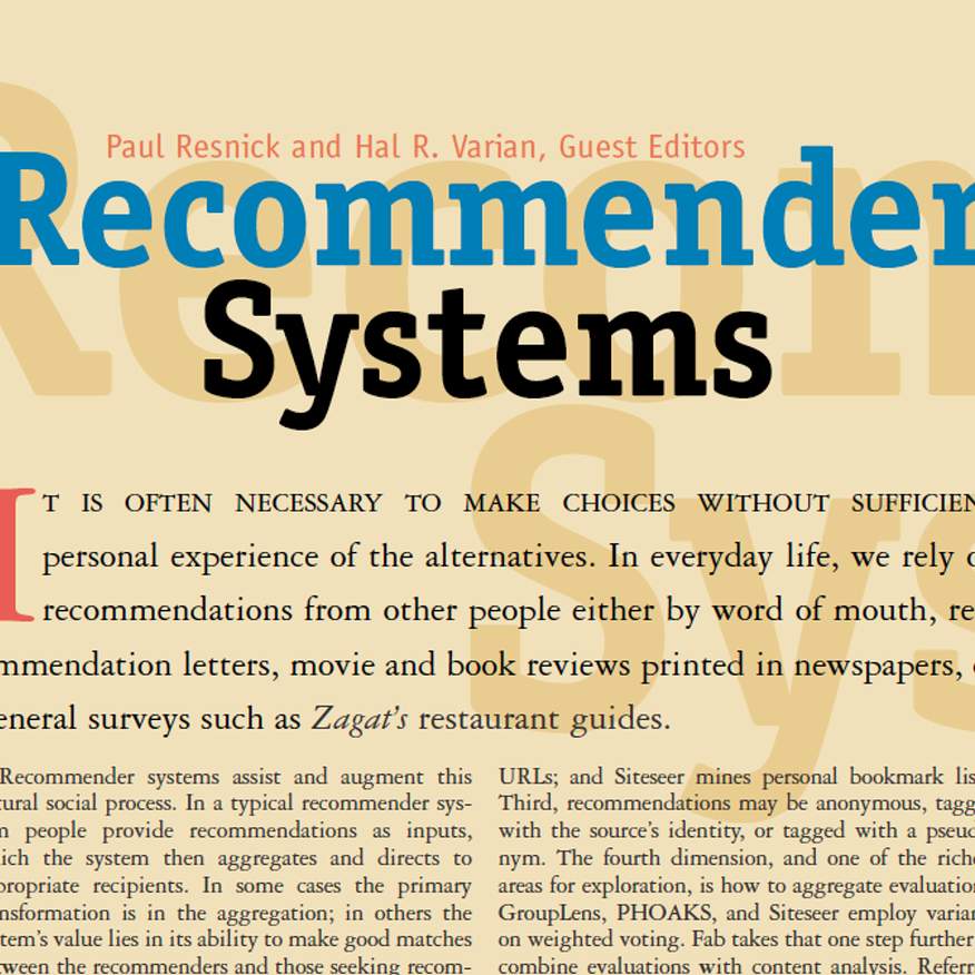 In the flood of digital content we navigate daily, recommender systems shape our choices—from Netflix shows to Amazon purchases, from TikTok feeds to Spotify playlists. Yet their very name, “recommender systems,” has a precise origin: a 1997 special section in Communications of the ACM guest-edited by Paul Resnick and Hal R. Varian.