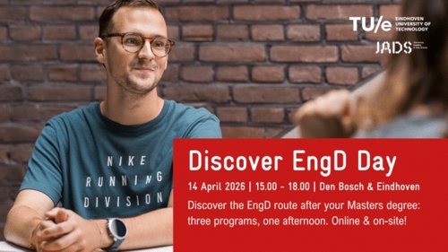 Considering your next step after a master’s degree? On April 14, TU/e and JADS host a joint EngD afternoon (hybrid, online or on campus) where you can explore three EngD programs in one setting: